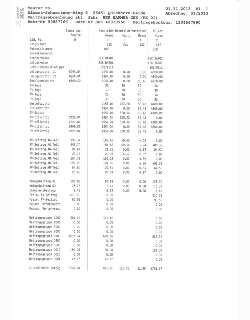 - Beitragsnachweise für die Krankenkassen (incl. Erstattungsantrag bei Krankheit und Mutterschaft bei Teilnahme am Umlageverfahren)
